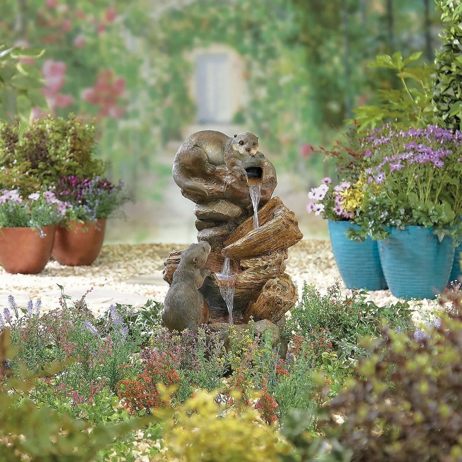 Stylish Fountain Otter Pools Water Feature With LEDs