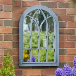 The Vista mirror, in coppergris, is a great way to enhance any space with its sleek and stylish appearance.